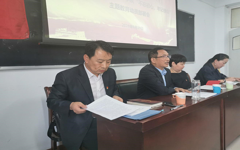 会上,学院党总支书记白宝成传达学校党委“不忘初心、牢记使命”主题教育动员部署会议精神,对学院主题教育工作进行安排部署,逐条讲解学院主题教育实施方案。白宝成书记强调,召开学院“不忘初心、牢记使命”主题教育动员部署会,主要任务是深入学习贯彻习近平总书记关于“不忘初心、牢记使命”主题教育系列重要指示精神,全面落实中央、自治区党委和校党委关于开展第二批主题教育的部署要求,对学院开展主题教育进行安排部署;开展“不忘初心、牢记使命”主题教育,是全党的一项重大政治任务,我们要高举习近平新时代中国特色社会主义思想伟大旗帜,把思想和行动高度统一到习近平总书记重要讲话精神与党中央决策部署上,把主题教育作为进一步增强“四个意识”、坚定“四个自信”、做到“两个维护”的大课堂,以自我革命精神、科学有效方法抓好主题教育,办好人民群众满意的教育,助力打造祖国北部边疆亮丽风景线更加出彩,以优异成绩迎接新中国成立70周年!